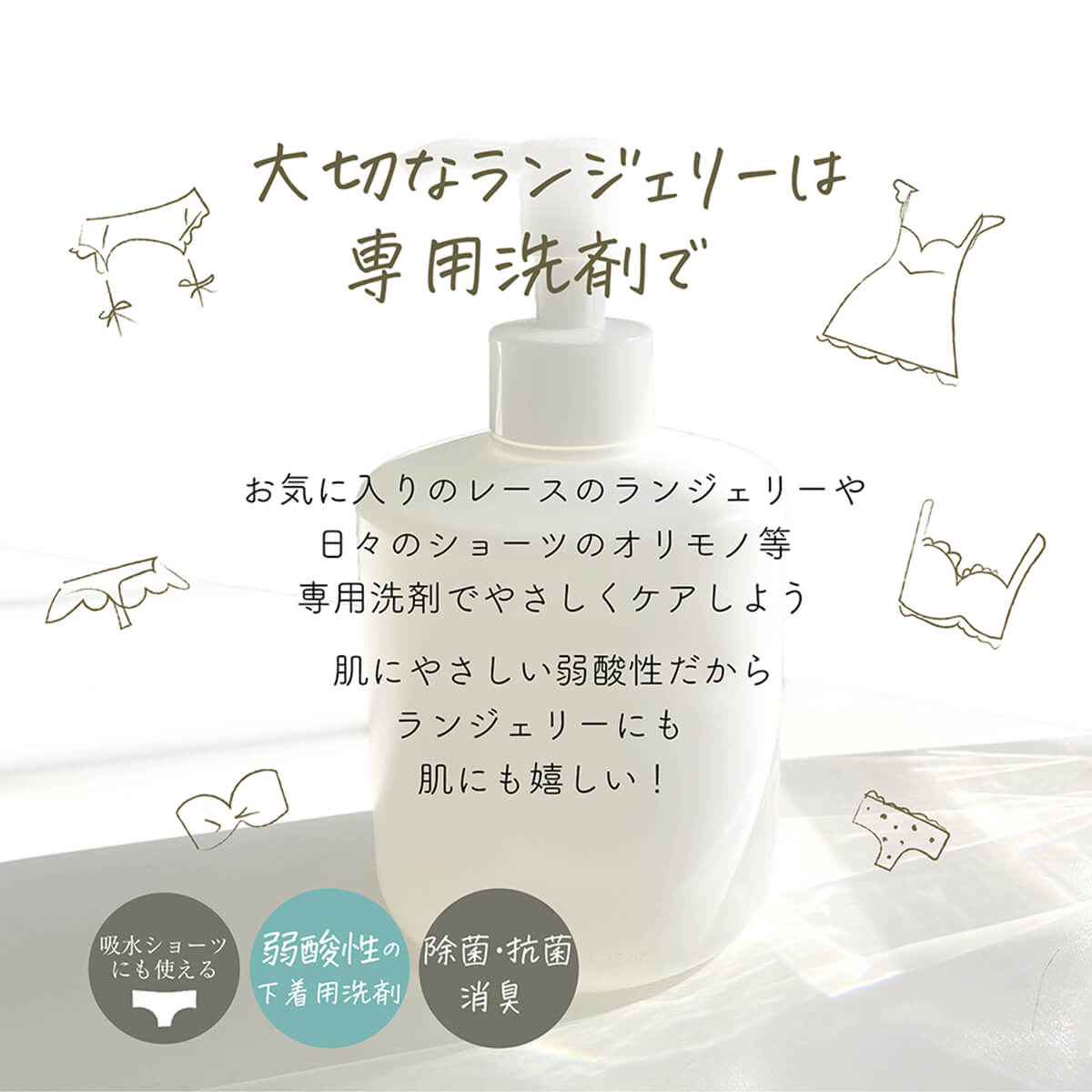 繊細な下着を守る弱酸性の下着専用洗剤。毎日の洗濯が癒しの時間に。