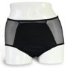 ハイウエストはクロッチ部分の抗菌布にブラックではなくパープルを使用。そうすることで、水分の量を目で確認することができ、また洗濯時に汚れがきちんと落ちているかもわかりやすくなっています。