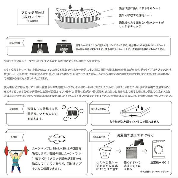 他の画像を見る 吸水ショーツ MOON PANTS:ムーンパンツ ボクサー ブラック M(〜98cm) 送料無料 NEW サニタリーグッズ 吸水ショーツ 販売価格 ¥ 7,150 税込 カートに入れる お気に入りに登録する